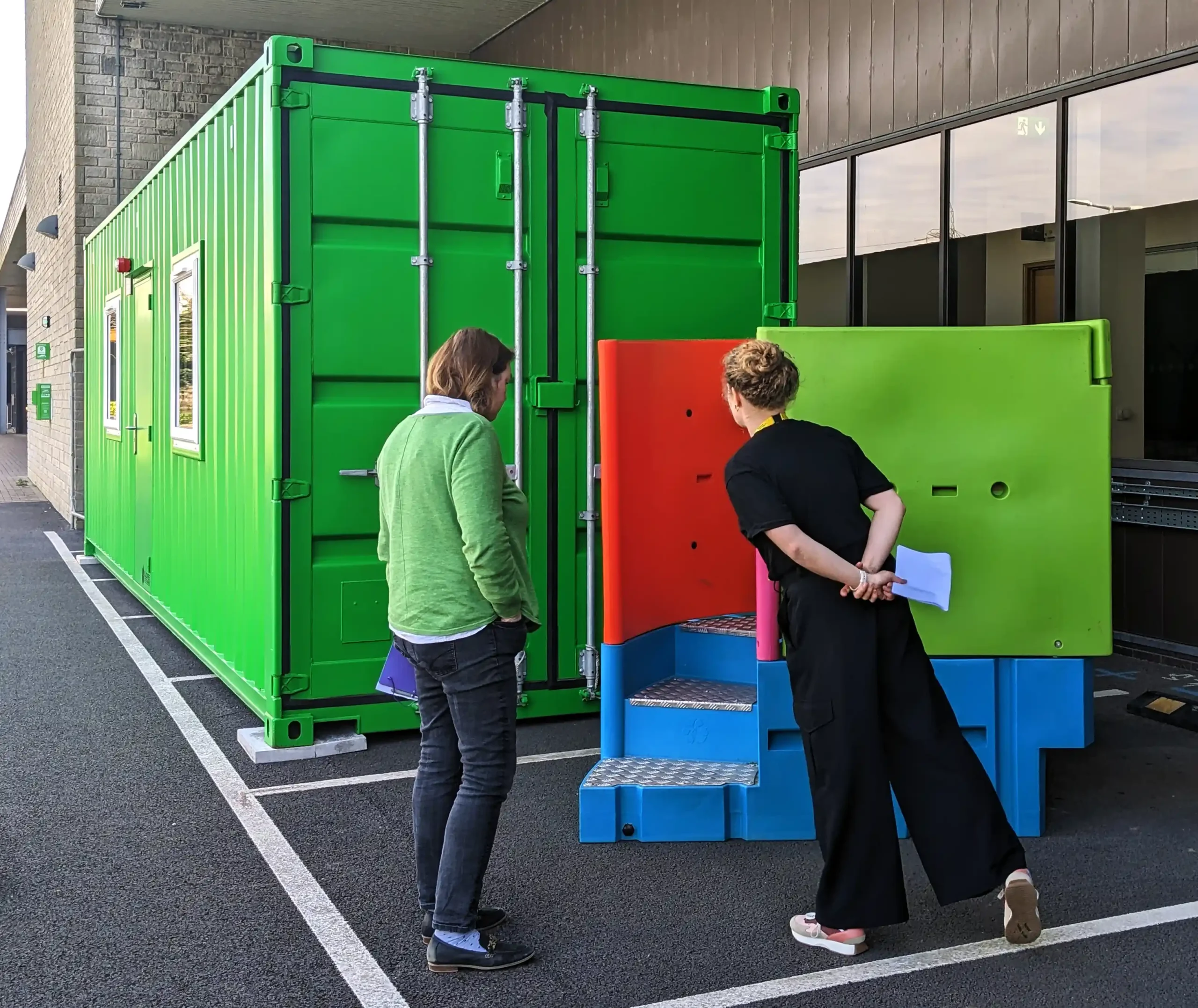 The container laboratory was delivered to the NPK Recovery site in Bristol by our trusted haulier. Hoping to be placed within the building, the delivery team were able to transport the unit through a tightly sized entryway to its temporary home. Through skill and determination, they were able to place the container in the desired place without issue.